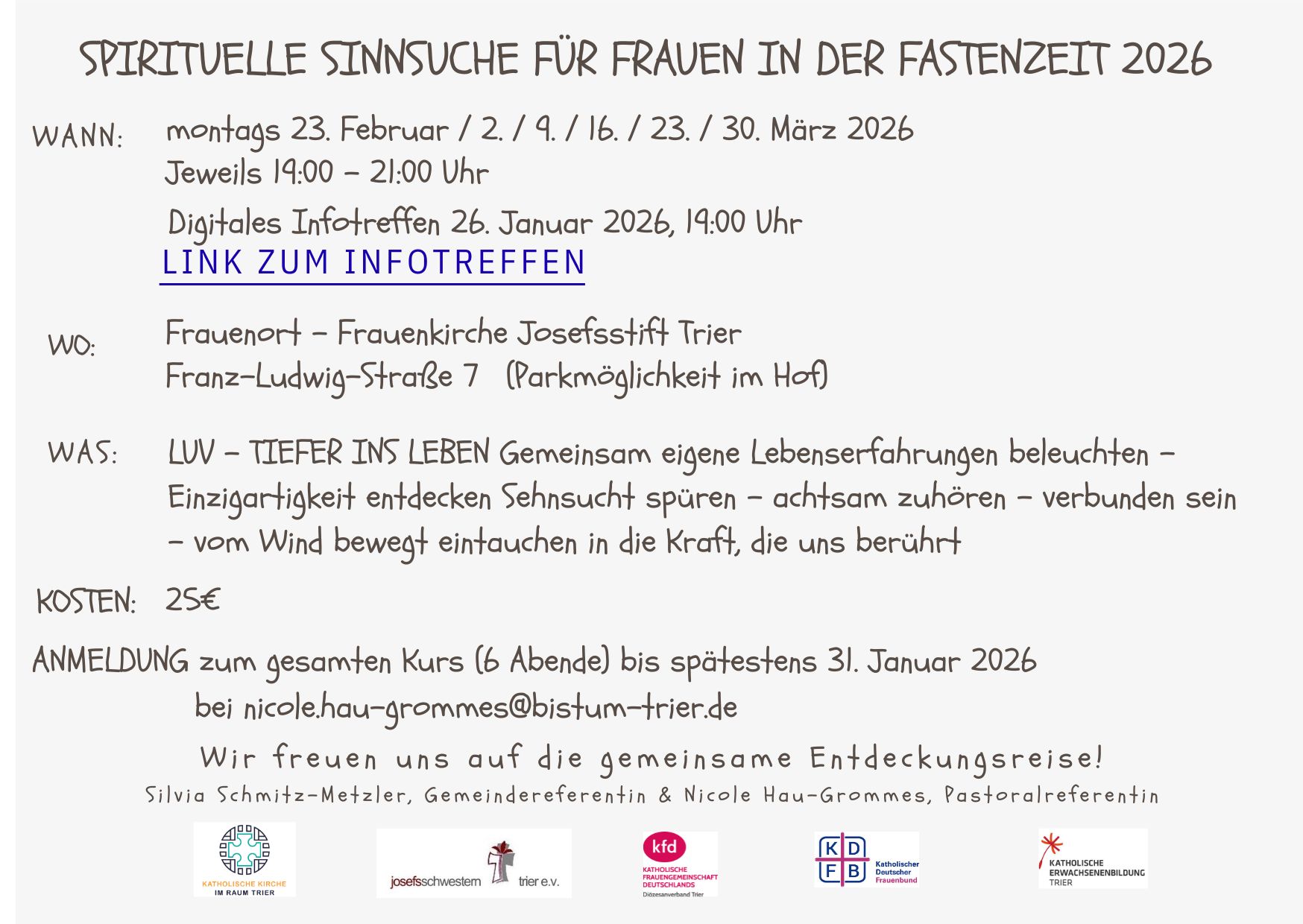 Was geschieht in den Religionsgemeinschaften und in den unterschiedlichen kulturellen Traditionen, wenn ein Kind geboren wird? Menschen vielfältiger Glaubensgemeinschaften, dem Judentum, dem Islam, dem Christentum und der Bahá’í-Gemeinde, tauschen sich an diesem Abend darüber aus, wie ein neugeborenes Kind in ihren Familien und Gemeinden begrüßt wird. Veranstalter ist der Arbeitskreis Interreligiöser Dialog Trier. Themen des Abends werden unter anderem sein: Wie bereitet man sich auf die Geburt vor? Welche Riten und Feiern gibt es? Welche besondere Verantwortung haben Eltern in den ersten Lebensjahren? Wie werden Kinder im Glauben begleitet?